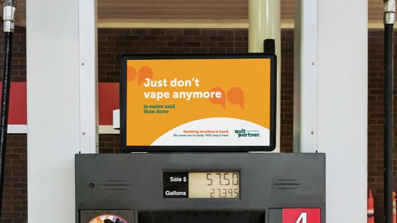 The campaign was built on a simple truth: telling someone to quit is easy—quitting is the hard part. So we took the comments nicotine users hear on repeat and flipped the script with a little understanding and a lot of empathy. And then we showed up in the moments and places they live—from digital environments like YouTube to point-of-purchase screens at gas station checkouts (and plenty in between). Every touchpoint delivered the same tone: No finger-wagging. No lectures. Just empathy for the struggle and a reminder that free support is available whenever they’re ready, through Quit Partner.
